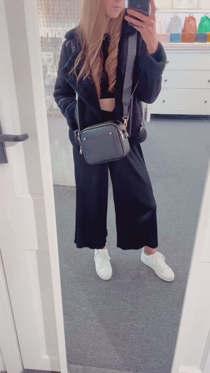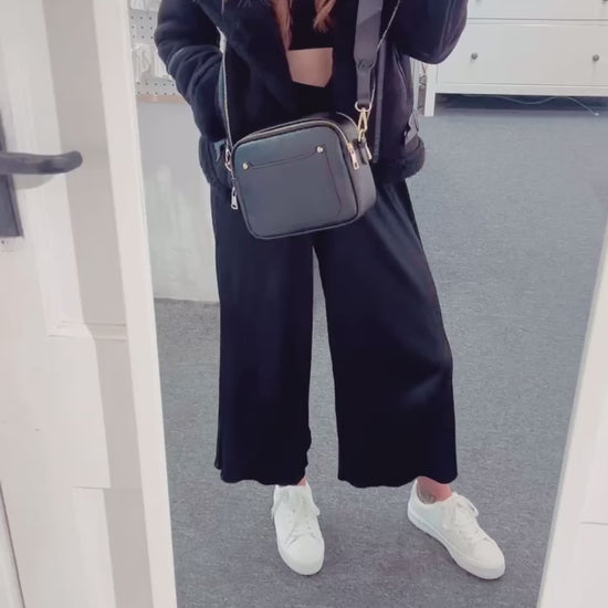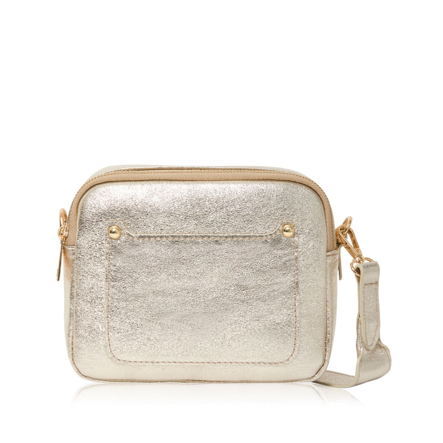 Make a statement with our luxurious Italian leather crossbody camera bag. Its two zipped compartments provide plenty of secure storage, while its small open top pocket on the front and thick detachable leather strap adds both convenience and style. Its gorgeous gold hardware finish adds a beautiful finishing touch to this statement bag.